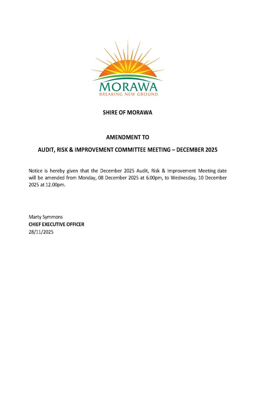 Amendment of Audit, Risk & Improvement Committee Meeting