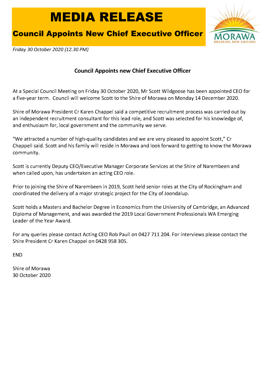 Council Appoints New Chief Executive Officer